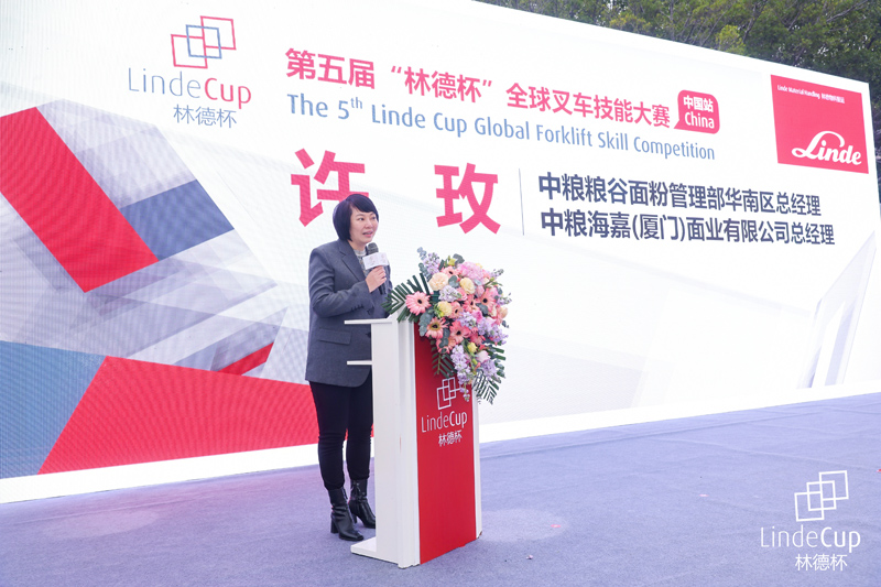 一直以來,林德(中國)始終關注客戶需求,為客戶提供優質的產品和物料搬運整體解決方案。現場,中糧糧谷面粉管理部華南區總經理、中糧海嘉(廈門)面業有限公司總經理許玫在開幕式中表示對本次賽事充滿了期待,對于與林德的合作也充滿了信心:“近年來,林德(中國)不斷追求創新,開發了一系列自動化、數字化、新能源的產品和解決方案,以高度靈活性和強大的實力助力我們企業向智慧化、綠色化物流轉型升級。”目前,共有數十臺定制化、不同型號的林德叉車在倉庫運轉,承擔著中糧海嘉小麥生產、出庫、裝車發貨等環節的搬運。